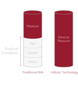 InBody measures body composition without relying on empirical assumptions based on age, sex, ethnicity, or body shape, producing accurate and precise results validated to gold standard methods. Simply put, InBody provides